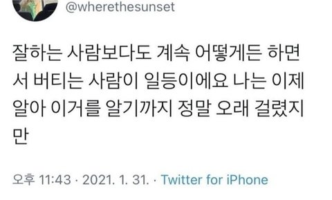 해야할일도 다 하지도못하고퇴근하게되어 피해만 끼치는것같아 자존감이 자꾸 낮아지네,, 이럴때일수록 내잘못인정하고 버텨내고 이겨내야지 하면서도 잘안되네,, 빨리 내걸로만들어서 나한테 자신감을 찾아야될텐데 ,,, 저글에서는 잘하는사람보다도 계속어떻게든 하면서 이겨내는사람이 일등이에요,,,라고 적혀있는데 저게 맞는걸까,,,나는 그냥 잘하고싶은데 ,,,언니들 따끔한 조언 부탁해 ,,,