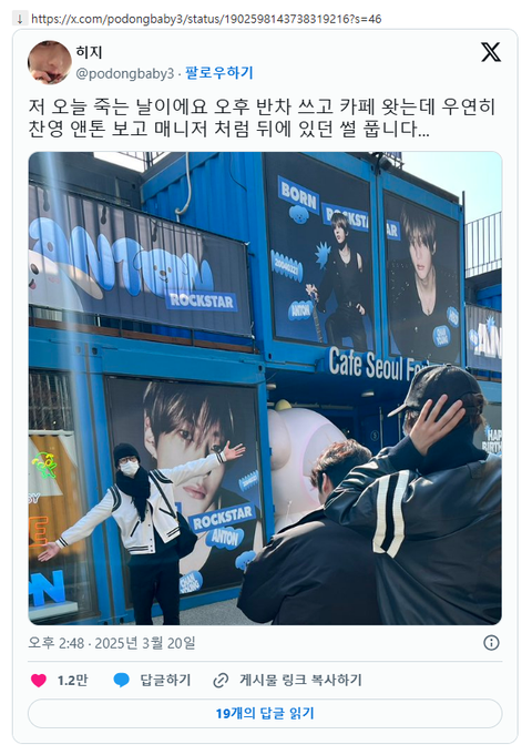 앤톤이 이 팬이 연 카페에만 가서 사진 찍은 목격담이 생일 전날 뜸