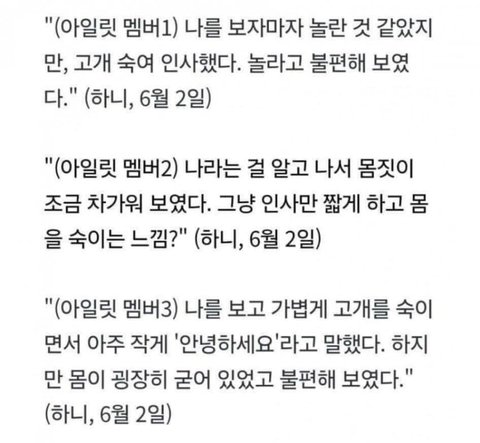 니들이 당했다는 왕따, 직장내 괴롭힘은 정작 아일릿이 당하고 있었고, 스텝이 지들 악플개정 팔로우 했다고 또 엄한 아일릿 머리채잡고 사방팔방 처흔들더니 정작 지들은 직접 나서서 아일릿 악플개정 주인이랑 현실친목 다지고 있고 니들이 사람이냐?