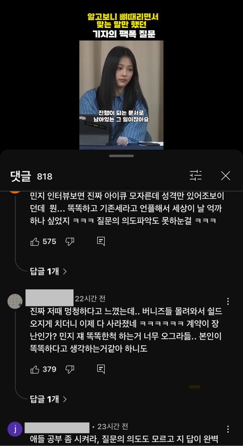 이건 이때싶 아님?? 혹시 이해가 되셨을까요 이게 왜 태도문제인거지 나도 이번사태 뉴진스 쪽이 이해가 안되는 입장이긴 하지만 이거는 걍 이때싶같은뎅