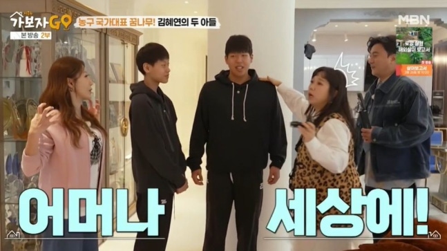 이어 김혜연은 5년째 살고 있는 잠원동 집을 공개했다. 최용수 감독, 주영훈&이윤미 부부와 이웃 주민이라고. 김혜연은 1층을 택한 이유로 "층간 소음 때문에 너무 힘들었다. 그래서 1층을 찾아다녔는데, 여기선 운동을 하는 셋째, 넷째가 농구 드리블을 해도 뭐라고 하지 않는다"고 했다. 두 아들은 휘문중학교 농구부 소속이라고. 안정환, 홍현희는 셋째의 어깨를 보고 깜짝 놀랐고, 김혜연은 "저희 남편이 유도 선수 출신인데 역삼각형이다. 아빠를 닮았다"고 밝혔다.
