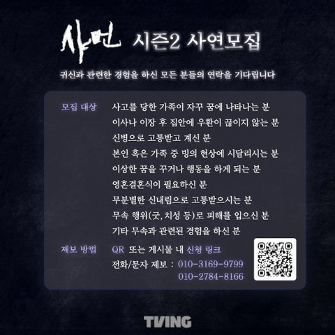 **TVING 오리지널 다큐멘터리 샤먼 시즌 2 제작팀에서 제보를 기다립니다**