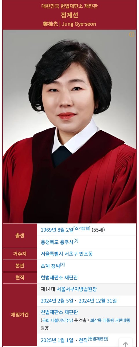 (사진1 설명) 정계선(鄭桂先, Jung Gye-seon) 대한민국 헌법재판소 재판관 <출처 : NAVER 나무위키>