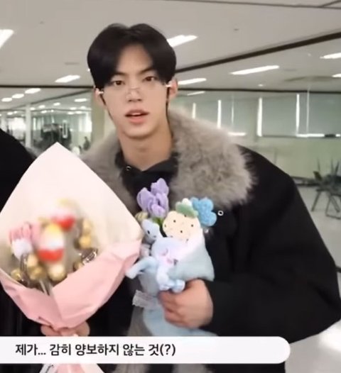 하지만 공항에서 마주친 기자님들께 나눔하는 도훈이