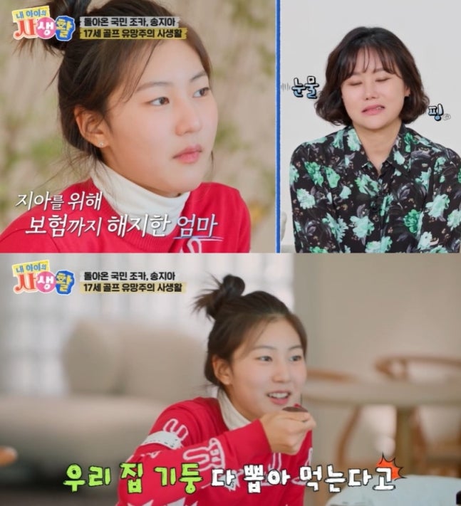 이날 송지아는 자신의 골프를 위해 어머니가 물심양면 지원 중이라고 밝혀 눈길을 끌었다. 송지아는 "엄마가 골프 전지훈련 때문에 건강 보험도 해지했다. 그 말을 듣고 많이 울었다"며 가정 경제 상황을 언급해 뭉클함을 자아냈다.