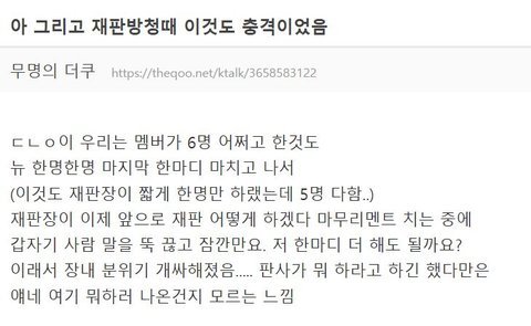 좀… 아무리 어리다지만 세상물정 너무 모른다… 재판도 방송이나 어디 인터뷰하는거라고 생각하는거 같아.. 이제 좀 안타까울 지경..