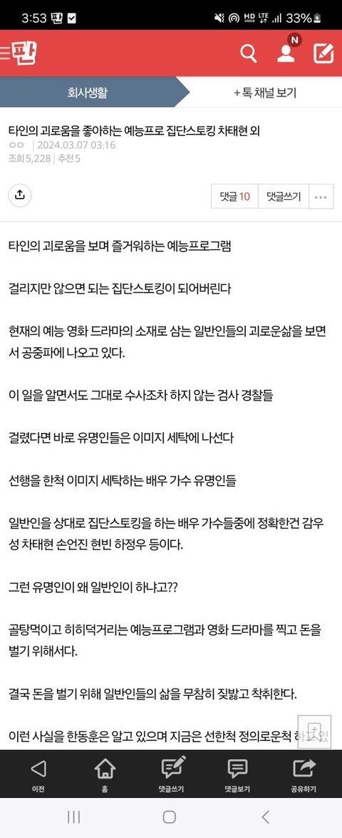 스토킹 비유 대상자 연예인 공인들이