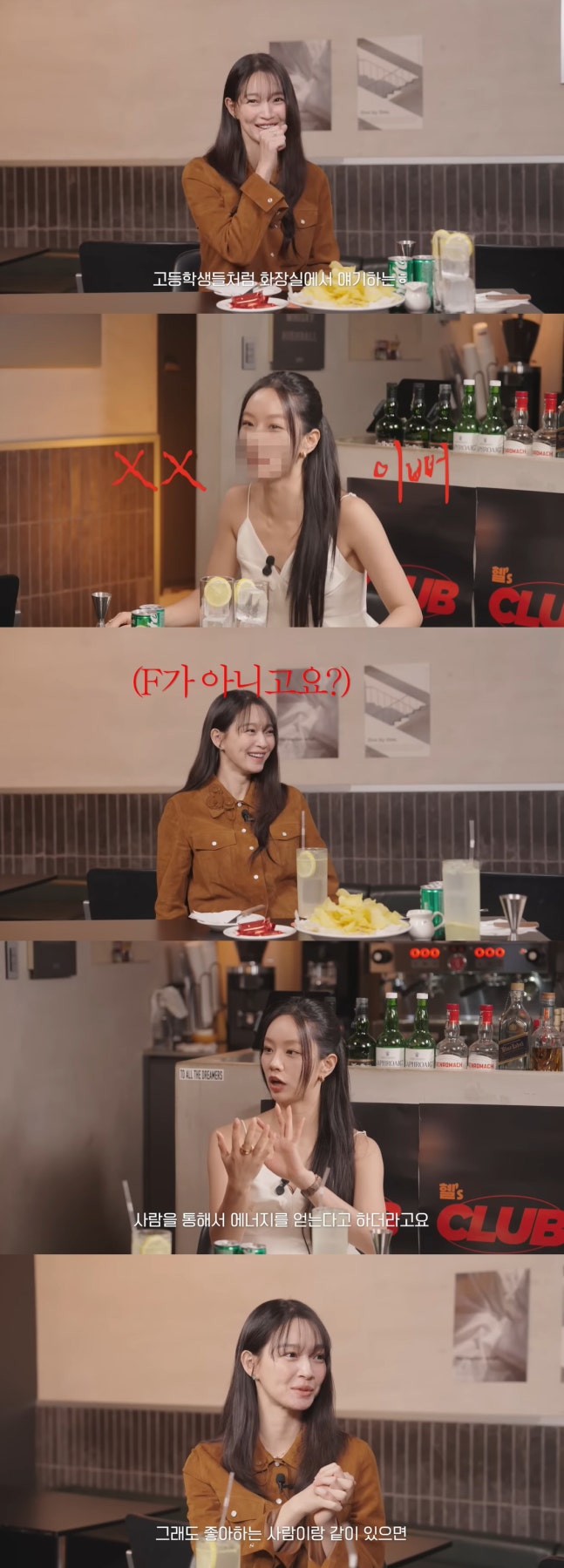 그런가 하면 신민아는 "러블리한 이미지가 강한데 추구미가 있나"라는 질문에 "아무래도 그런 캐릭터를 많이해서 러블리하게 봐주시는 거 같다. 원래는 터프하달까?"라고 답했다. MBTI는 INTP라면서 "제가 이 말을 하면 주변에서 다들 놀란다"라고 말했다. 혜리도 "T세요? 근데 F같다. E 성향의 사람은 사람을 통해 에너지를 얻는다고 한다"라고 말했고 신민아는 "저도 그런 것 같다"라며 잠시 생각에 잠겼다. 혜리가 E일 것 같다고 하자, 신민아는 "좋아하는 사람과 같이 있으면 (좋다)"라고 고개를 끄덕이기도.