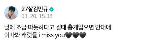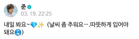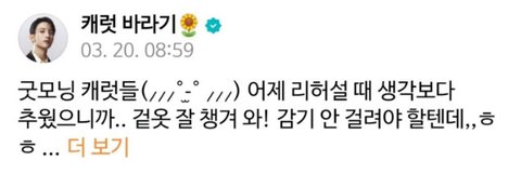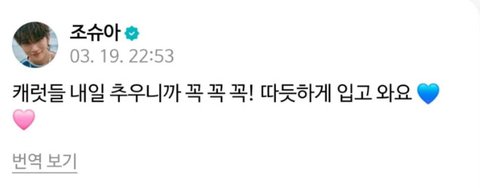 유형 3) 애교형: 캐럿들 보고시포 근데진짜추우니까 따뜻하게 입고와잉~