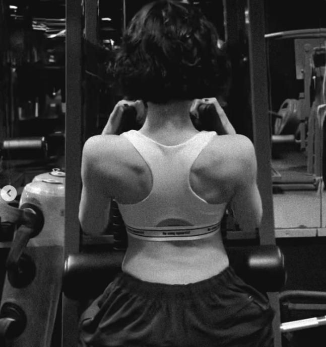 사진 속 나나는 복근이 드러나는 크롭톱을 입고 운동에 매진하는 모습이다. 등 운동을 통해 드러난 멋진 광배근이 시선을 사로잡는다.