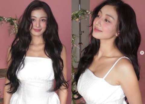 사진 속 지효는 긴 웨이브 머리를 늘어뜨리고 화이트 원피스에 청순한 분위기를 더했다.