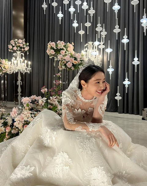 사진에는 웨딩드레스를 입고 환하게 웃으며 우아한 자태를 뽐내고 있는 이민정의 모습이 담겼다.