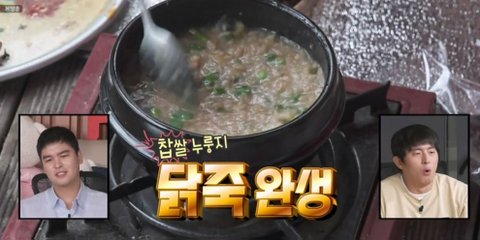 잘 우려난 국물에 찹쌀 넣고 팍팍 끓인 누룽지 닭죽 ㅁㅊ