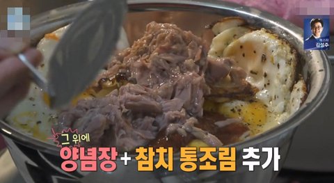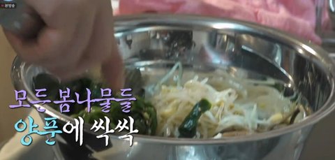 양념장에 참치 통조림까지 때려 넣어 봄나물 비빔밥 완성 ㅠㅠ
