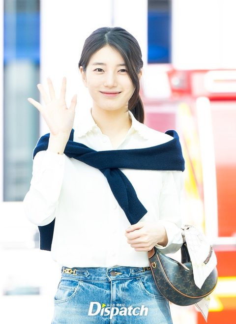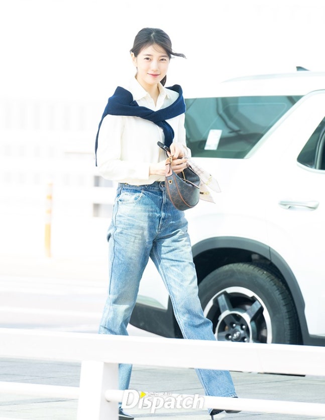 수지는 화이트 셔츠에 청바지로 캐주얼 패션을 보여줬다. 밝고 아름다운 미소가 돋보였다.