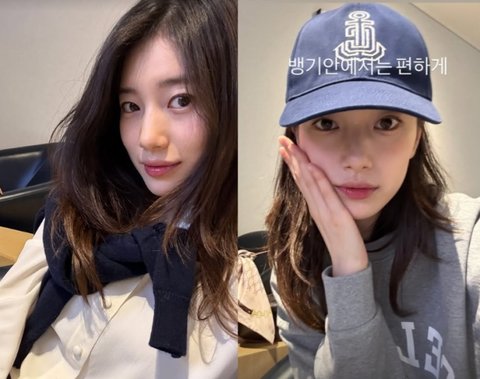 이어 수지는 "뱅기 안에서는 편하게"라는 문구와 함께 옷을 갈아 입은 모습을 공개했다. 편해 보이는 회색 맨투맨에 캡모자를 쓴 채 '치통샷' 포즈로 미모를 자랑하고 있어 눈길을 끈다.