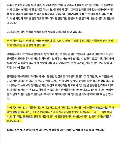 이렇게 하면 뉴진스에게 피해가 갈 거 같아서 저 팬덤에서 민희진은 더 이상 뉴진스를