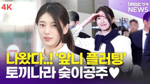 수지, 토끼나라 �G이공주…'앞니 플러팅'의 정석(공항패션)
