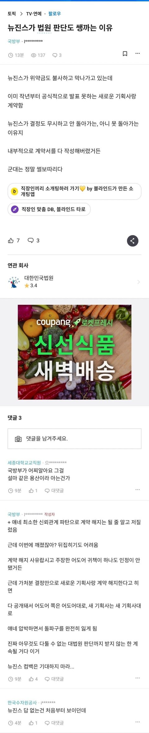 뉴진스 저러는거 음모론 있던데 느낌 쎄함