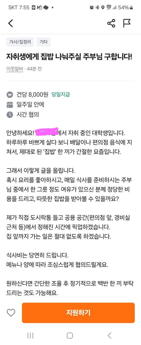 자취생에게 집밥 나눠주실 주부님 구합니다!
