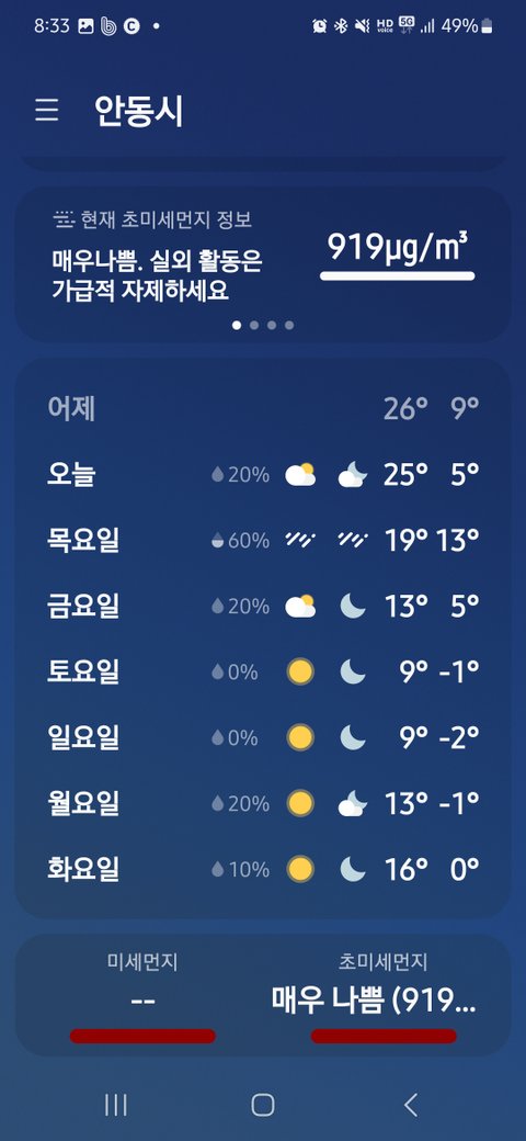 경북도청 소재지인 안동 풍천면도 오늘 연기가 지독했지만