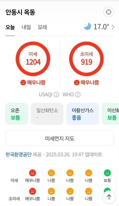 어제 낮 미세먼지와 초미세먼지 수치는 한때 1200이 넘어 측정되지않을 정도였습니다