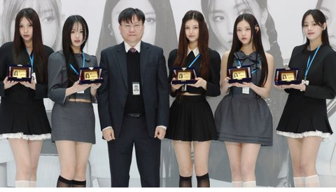 ▲ 김종호 인천공항본부세관장이 지난해 3월 걸그룹 ‘뉴진스’를 홍보대사로 위촉하고 기념촬영을 했다. 사진 제공=인천공항세관.