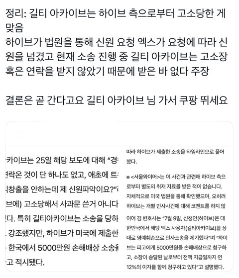 와 고소 안 당했다고 당당하게 말했는데 고소당한 걸 본인이 모르는 상태였구나 진짜 길티다