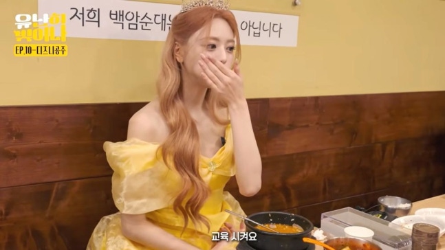 지난 26일 유나 개인 채널 '유난히빛이나'에 새로운 영상이 게시됐다. 영상 속 유나는 동화책 '미녀와 야수' 속 공주 '벨'로 완벽 변신해 순대국밥을 먹었다.