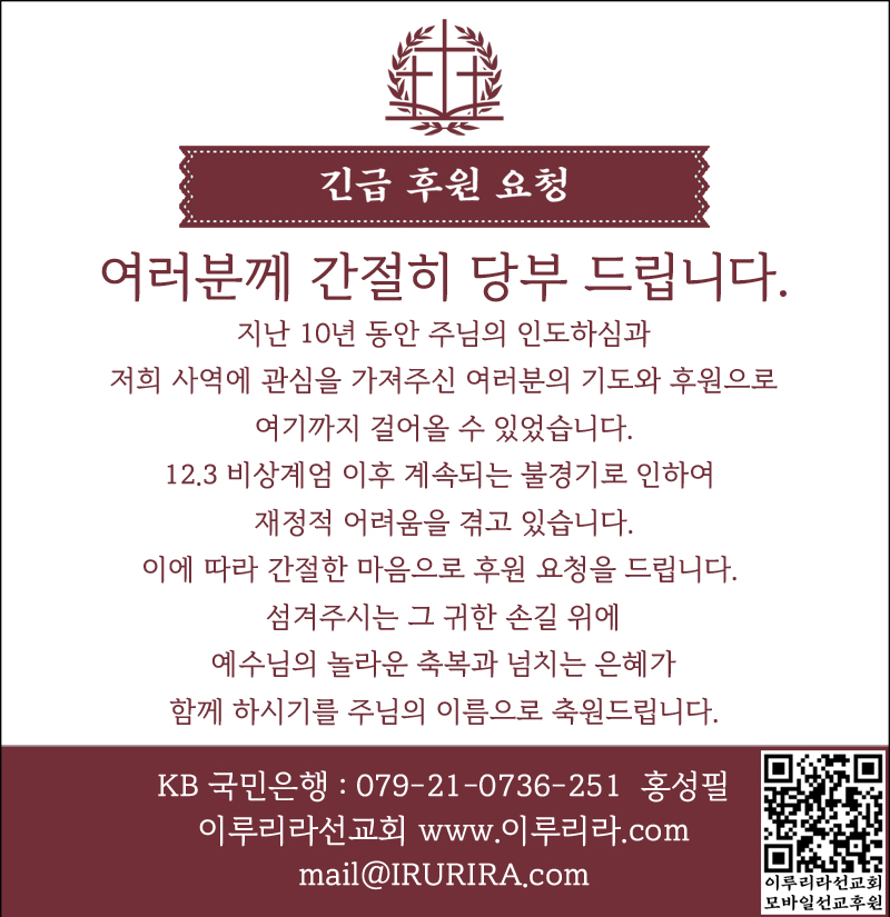 #기독교 #이루리라 #선교 #후원 #설교 #복음 #성경 #동영상 #교회 #예배 #목사 #한인교회 #장로교 #예수님