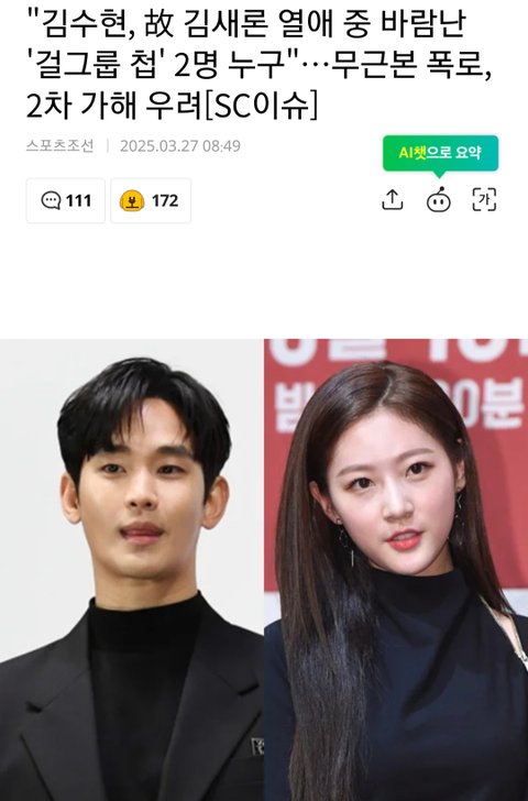 김수현, 김새론과 연애중에 바람피운 연예인 누구?