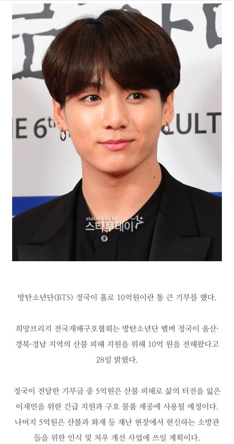 방탄 정국 기부 기사 보고 소름 쫙 돋음