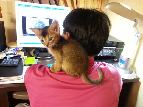제일 머리가 좋다고 해요.정말 활발하고 개냥이 스타일이에요.아기때부터 어깨위가 지 자리인데 다 커서도 어깨위로..(매우 무겁 ㅠㅠ)