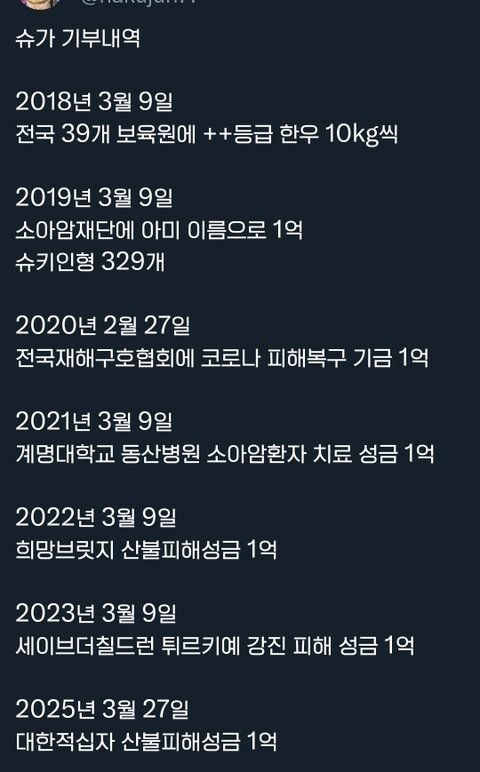 그 방탄 기부 글 보다가 댓글에 보육원에 슈가가 소고기 기부햇다는 댓글 있길래 ㅈㄴ 놀랬네 음주도 그렇고 사소한 논란 많다고 알아서 나한테는 이미지 막 좋지는 않았는데 저거 보고 되게 잘 살아온 사람이라고 생각 고쳣음