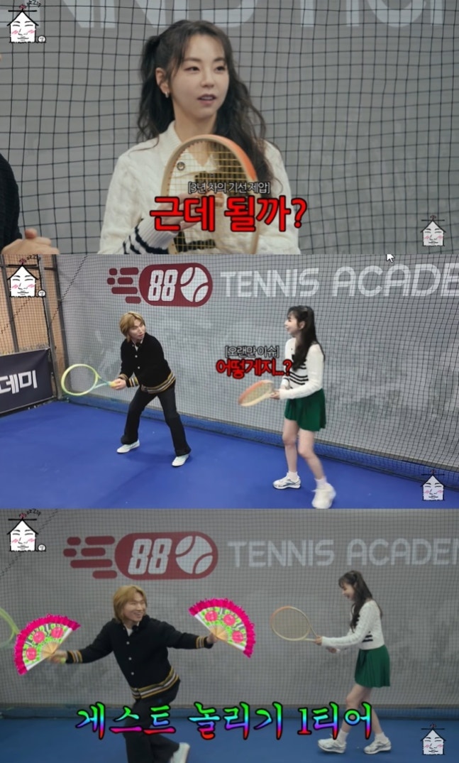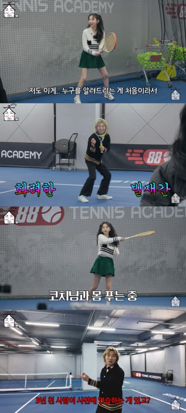 사진=‘집대성’ 채널 영상 캡처안소희는 대결에 앞서 대성에게 테니스 기본 자세를 가르쳤다. 그러나 안소희는 “어떻게지?”라며 자세를 까먹은 듯한 모습을 보였고, 대성은 “부채춤 추신 건가”라고 안소희를 놀렸다. 이에 안소희는 “저도 누구를 알려드리는 게 처음이어서”라고 해명했다.