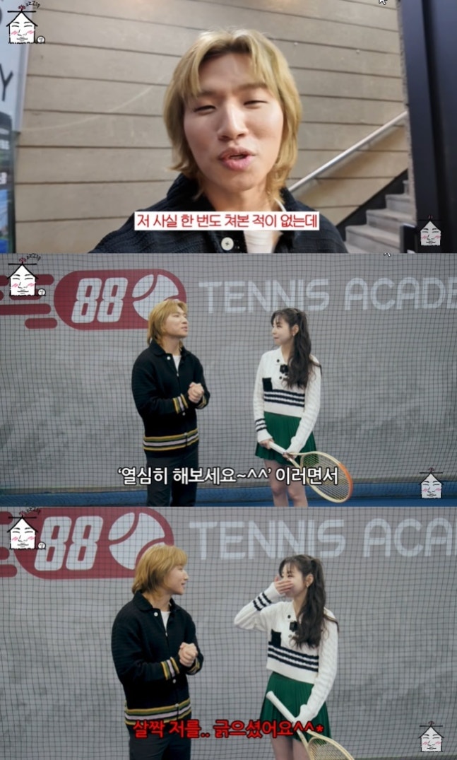 브이로그 감성으로 등장한 대성은 “오늘 엄청난 분이다. 사석에서 최다로 만난 분이 아닌가. 두세 번 정도 뵌 것 같은데 이분과 그때 대화를 나눴다. 이분이 테니스를 치고 계시다고 해서 ‘시합 한번 해보시죠’라고 했다”라며 “저 사실 한 번도 쳐 본 적이 없다. 비슷한 거라곤 군대에서 배드민턴 친 경험뿐이다. 그때 나름 앵클 브레이커로 활약했다. 테니스는 완전 다른 게임이기는 하지만 그때 감각을 살려서 한번 제가 호기롭게 도전해봤다”라고 말했다.