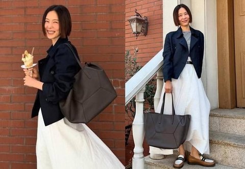 김나영은 네이비 재킷과 스트라이프 티셔츠, 롱스커트를 매치한 캐주얼하면서도 감각적인 꾸안꾸 룩으로 눈길을 끌었다.사진=김나영 SNS사진 속 김나영은 네이비 재킷과 스트라이프 티셔츠, 롱스커트를 매치한 캐주얼하면서도 감각적인 꾸안꾸 룩으로 눈길을 끌었다.발목까지 내려오는 루즈한 실루엣의 스커트는 여유롭고 편안한 무드를 자아냈으며, 브라운 배색의 로퍼와 큼직한 블랙 토트백으로 실용성을 더했다. 무심하게 툭 걸친 재킷 아래 자연스럽게 드러난 스트라이프 티셔츠의 레이어링은 김나영 특유의 꾸민 듯 안 꾸민 멋을 더욱 돋보이게 했다.