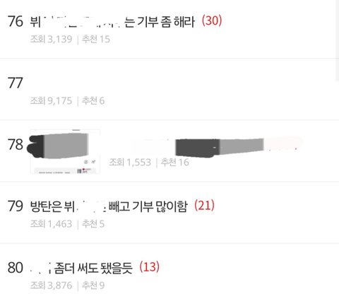 이거 어제부터 방탄까려는 정병이 기부 소식 뜨자마자 멤버 3명 가지고 오후동안 어그로 끄는 글쓰다가 개인 기부했다니깐 그 많던글 두개 남기고 다 삭튀하고 이제 한명으로 방향 바꿔서 또 글쓴건데 제발 먹금 좀 해라 이딴 정병한테 뭘 설명해봐야 글만 싸질러 놓고 듣지도 않을뿐더러 얘가 ㄱㅅㅇ루머까지 썼던놈이라 더 발악하는거임