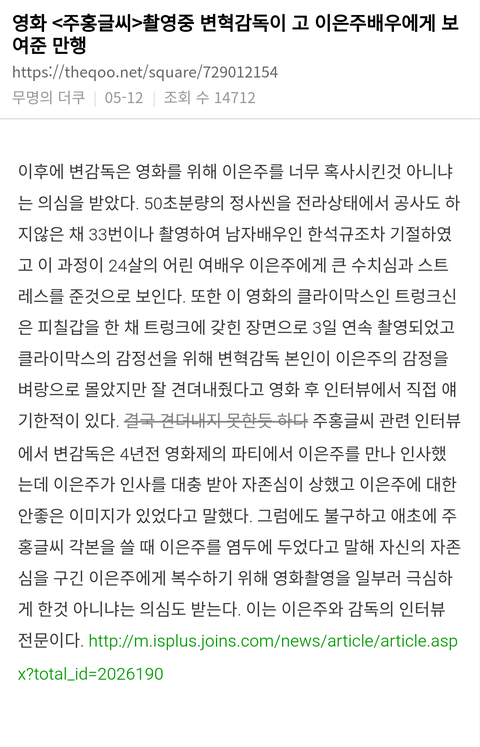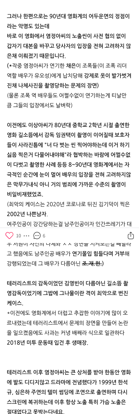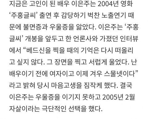 오직 연기를 하고싶다는 열정으로 찍은 영화인데 상반신 노출했다는거에 초점 쏠리면 얼마나 억울하고 죽고싶었겠어….