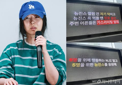 이날 버니즈는 "뉴진스 잘된 건 자기 덕이고 뉴진스 욕먹을 땐 뒤로 숨는 주변 어른들은 가스라이팅 멈춰", "6명을 위해 행동하는 NJZ말고 5명을 위한 뉴진스를 응원해", "어떤 프로듀서와 함께해도 무대에서 빛날 뉴진스를 응원해" 등 문구를 띄운 트럭 시위로 뉴진스 멤버들에게 민 전 대표와 동행을 멈춰달라고 촉구했다.