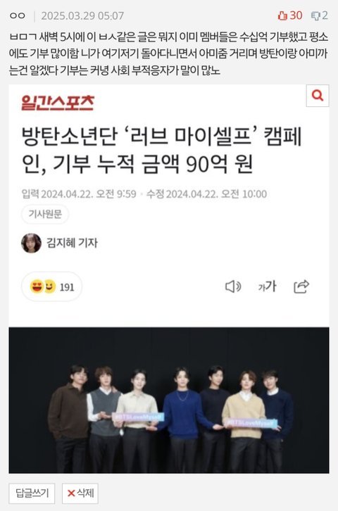 익명으로 하고있나보지ㅋㅋ 뷔만큼 기부 많이 한 아이돌도 찾기 힘듦