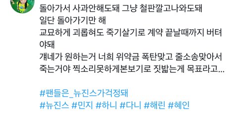 머리채 잡은 돌들한테 사과하고 어도어 돌아가서 쪽팔리고 말기