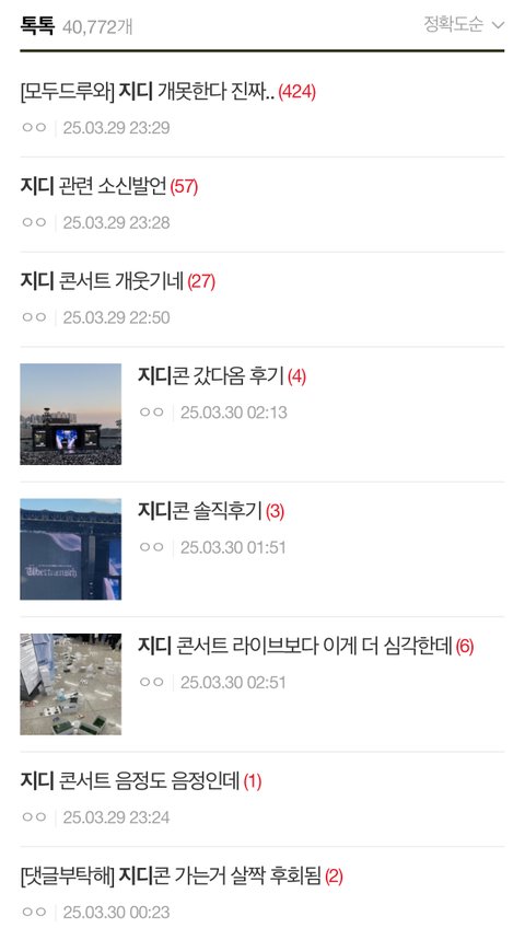 애초에 태연 팬 최근 콘서트 글 까는 글이 배댓 간것만 봐도 이런 화력 자체가 없음. 지디 태연 한살 차이 어쩌구 그냥 나중에 태연 까려고 떡밥 계속 까는거임. 무시하려고 했더니 티나서 한마디 하고 감