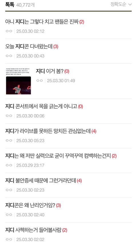 이런 글 쓰면 지디빠들 또 앙심품고 태연 트집잡는다 ㅋㅋ 애초에 태연하고 지디가 보컬 실력으로 비슷한적도 없음