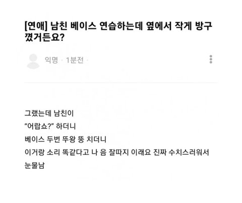 남친 베이스 연습하는 옆에서 작게 방구꼈거든?