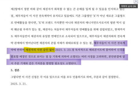 늊 홍콩콘은 어도어 동의 없었다는 법원 결정문