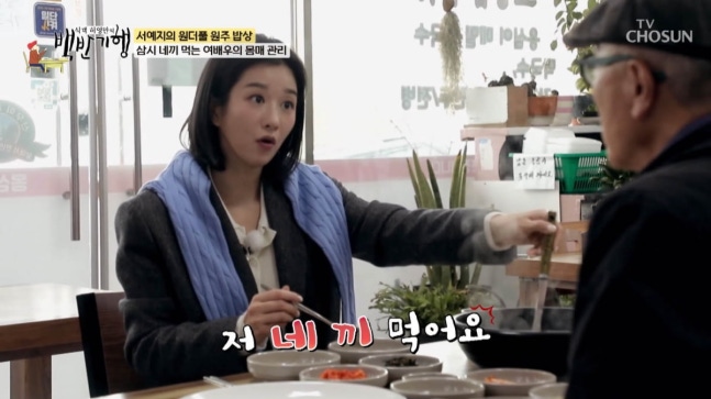 잘 먹는 서예지의 모습에 허영만은 "하루에 두 끼 먹냐, 세 끼 먹냐"고 물었다. 서예지는 "네 끼 먹는다. 제가 늦게 자서 새벽에 배가 고프다"라고 말했다. 이에 허영만은 "새벽에 먹는 사람치고는 관리를 잘하는 거 같다"고 이야기했다. 서예지는 타고난 체질에 더해 수영, 필라테스로 꾸준히 몸매 관리를 했다고. 서예지는 "20대 때는 감사했는데 서른 한두 살부터 늦게 먹는 게 안 빠지더라. 30대 노화인 것 같다"고 추측했다. 이에 70대 허영만은 "30대가 노화라고 생각하니까"라고 말해 웃음을 자아냈다.