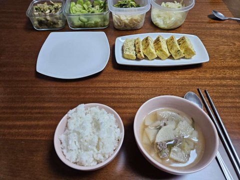 오븐 계란찜과 야끼니꾸랑 무조림 반찬으로 간단하게 먹어요