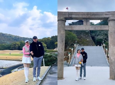 공개된 사진 속 민혜연은 남편 주진모와 일본으로 여행을 떠나 골프장에서 데이트하며 인증샷을 남긴 모습이다.