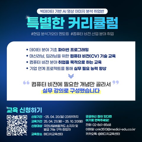 다 같은 분야로 가면 경쟁력 떨어지는거 알지? 지금이라도 컴퓨터비전(CV)해보는거 어떰?